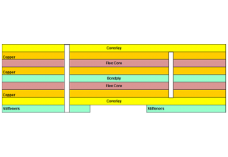 Multilayer flexible material with or without shield(s) or stiffener (more than two conductor layers) plated through holes and HDI.